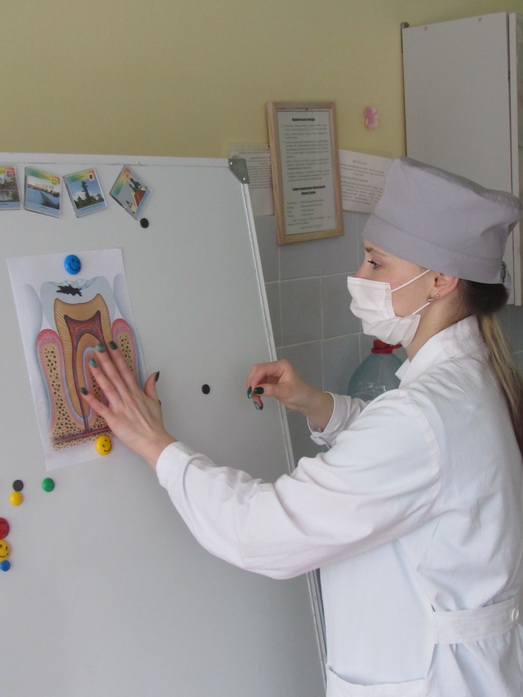 Врач- стоматолог(детский) Ю.И. Бобрук провела с детьми беседу о важности правильного питания, о болезнях зубов, их пломбировании и гигиене. Она обратила внимание детей на необходимость менять зубную щетку каждые 2-3 месяца, чистить зубки в течение 2-3 минут (утром обычной зубной щеткой, а вечером – механической). Напомнила детям, что сладкое можно есть не чаще двух раз в неделю, и сразу же чистить зубы или прополоскать их водой. Утром их надо чистить сразу после завтрака. Объяснила ребятам, что необходимо также чистить язык, ведь 80% бактерий живут именно на нем.