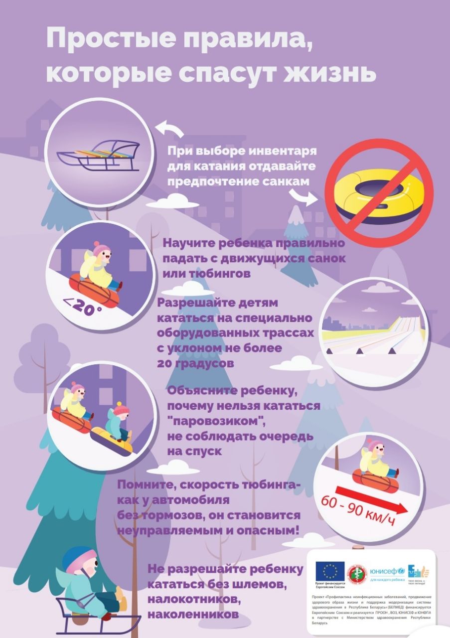 - Нельзя прикреплять тюбинги друг к другу верёвкой, они могут перевернуться, в верёвке может застрять какая-либо часть тела.