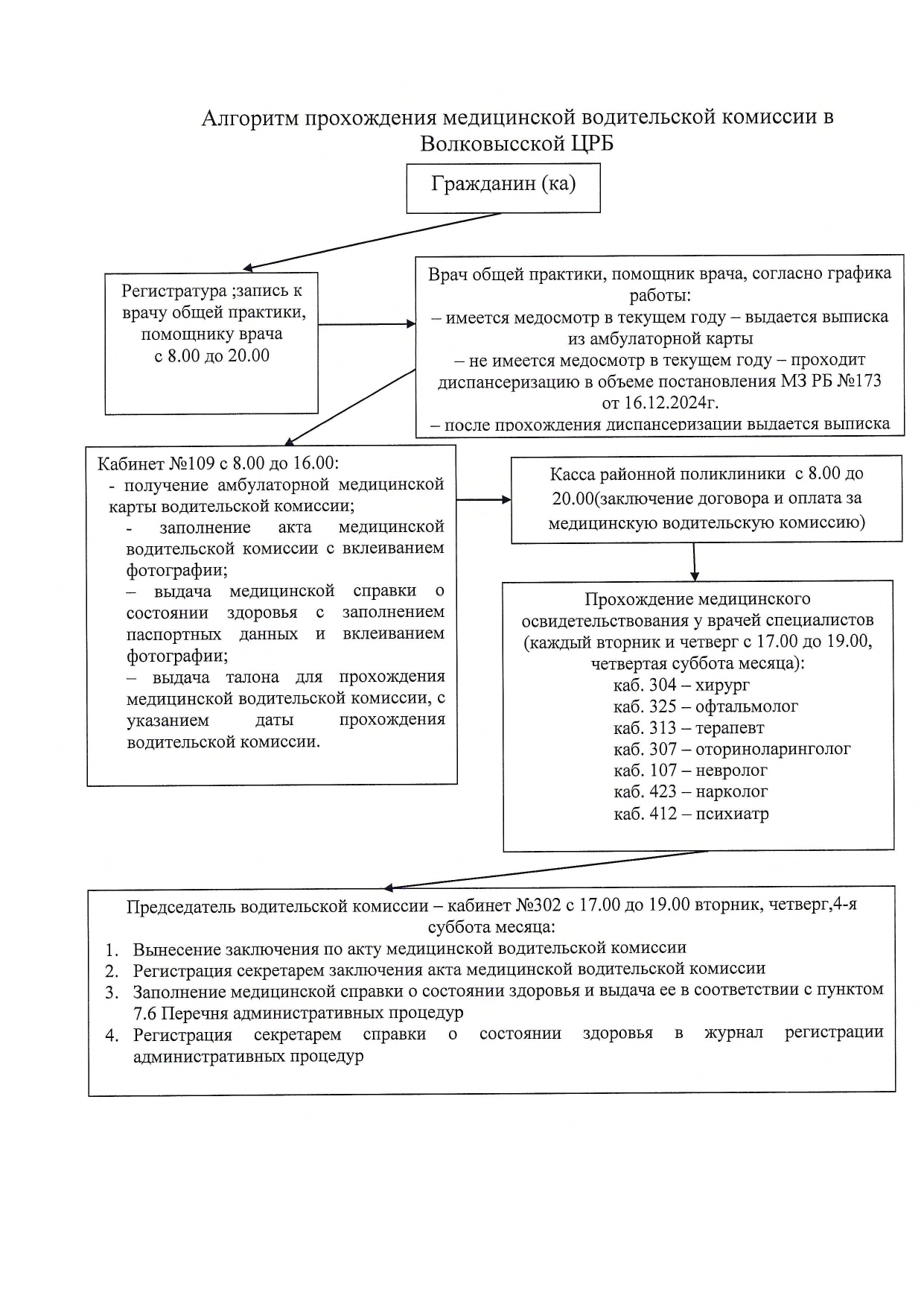 Алгоритм прохождения медицинской водительской комиссии в Волковысской ЦРБ